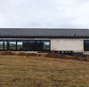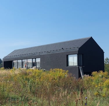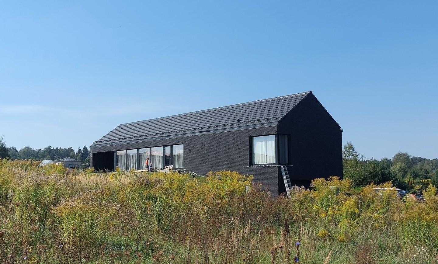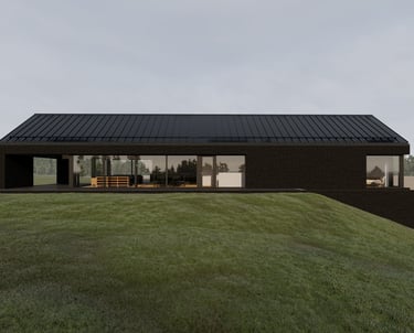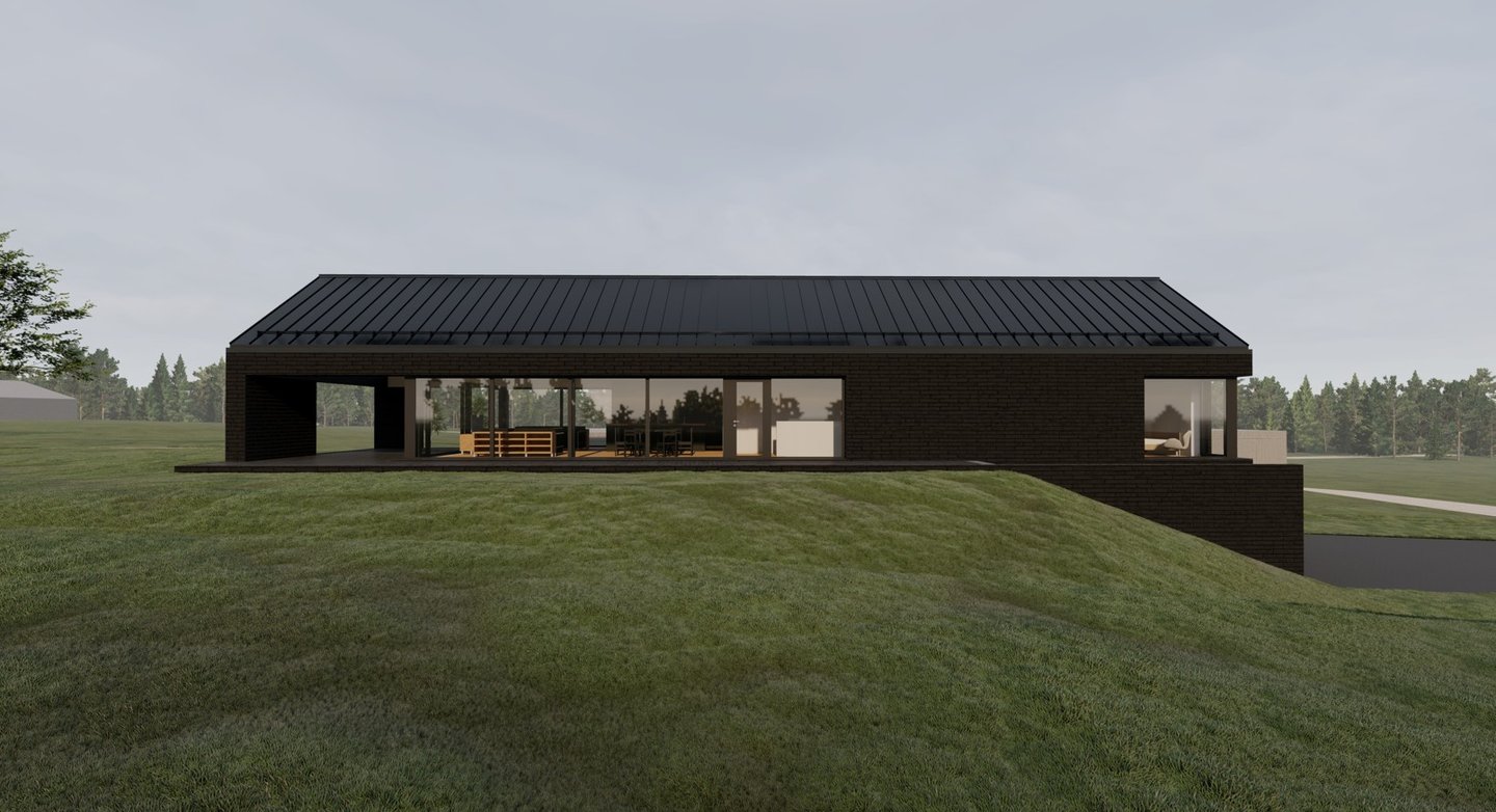 Tai lakoniškas, horizontaliai ištęstas tūris, kurio architektūrinė raiška grįsta monochrominiu medžiagiškumu ir griežta geometrija. Fasado vientisumą skaido ritmiškos įstiklinimo plokštumos, o ekstenduotas stogo šlaitas pabrėžia pastato tektoniką. Integracija į landšaftą pasiekiama per tamsų koloritą ir skaidrius vizualinius ryšius, formuojančius kontekstualų, minimalistinį siluetą.